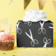 Papier d'emballage chic avec un motif de ciseaux en noir et argent de faux.