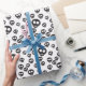 Papier Cadeau Motif avec crâne noir sur blanc