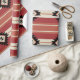 Motif de Bohème ethnique aztèque avec des formes géométriques dans des couleurs rouges, oranges, grises et noires sur l'arrière - plan rayé