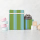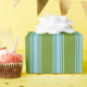 Ce modèle de papier d'emballage présente un motif à rayures vert et bleu ciel clair. Un papier comme celui-ci peut être utilisé pour préparer des cadeaux qui sont donnés pour célébrer un anniversaire, un mariage, un anniversaire ou un autre événement.