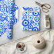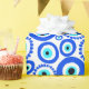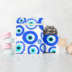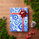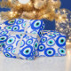 Papier d'emballage coloré à motifs bleu et blanc, avec l'OEil grec symbolique. Proclamé être une protection contre le mal. On le voit dans de nombreux pays, dont la Grèce et la Turquie.