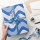 Dispose d'un beau motif de vagues bleues et blanches. Elles sont composées de lignes courbes, de formes géométriques entièrement abstraites mais aussi inspirées du monde naturel. Un design épuré et élégant.