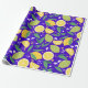 Motif botanique élégant Citrus Lemon en papier d'enveloppement bleu