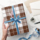Un papier d'emballage conçu avec un motif de plaid marron et blanc de grande taille. Customisez le arrière - plan blanc entre autres options.