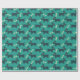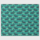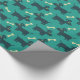 Papier enveloppant conçu avec un motif extensible avec un mignon chien souriant avec des oreilles disgracieuses et un os de chien. Arrière - plan vert.