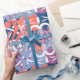 Papier d'enrobage Motif Abstrait coloré en FEUILLES. La conception montre un motif feuille en corail, bleu, lilas et bleu poudreux.