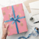 Ce papier d'emballage présente un motif d'ananas en feuille d'or faux tropical sur arrière - plan rose.