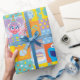 Ce papier d'emballage coloré présente un motif ludique d'Elmo, d'Abby Cadabby et de Cookie Monster de Sesame Street, entouré de décorations joyeuses sur le thème de l'anniversaire. Parfait pour envelopper les cadeaux pour les fêtes d'enfants, ce design vibrant ajoute une touche ludique et fantaisiste à toute célébration sur le thème de la rue Sésame.