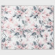 Papier enveloppant avec un élégant motif fait avec une aquarelle illustration de fleurs roses avec feuilles et tiges bleu-gris.