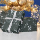 Papier d'emballage comportant un motif des baies blanches d'hiver avec un arrière - plan de vert de velours. Approprié à tout cadeau de Noël ou comme papier d'emballage de vacances d'hiver.