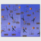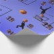 sur un dégradé bleu, les arrière - plans sont des joueurs de basket, des cerceaux, des boules, des numéros, des logos, dans un motif de basket coloré