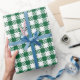 Farmhouse pays rustique vacances motif papier d'emballage cadeau. Motif classique, classique en plaid de buffle composé de bandes vertes et blanches croisées, horizontales et verticales. Comme une couverture de flanelle confortable. Idéal pour Noël et la saison des fêtes d'hiver.