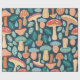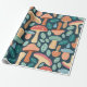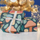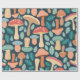 Un motif fantaisiste qui présente sur un arrière - plan turquoise sombre des champignons colorés et des éléments feuillus évoquant le charme magique d'une forêt enchantée.