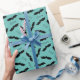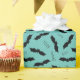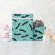 Papier d'emballage motif de chauve-souris Halloween avec 'Boo' et 'Éffrayant' texte sur arrière - plan turquoise/turquoise. La couleur Arrière - plan peut être modifiée dans l'outil de conception. Éléments correspondants disponibles. Oeuvre d'artistes propres illustrations. Veuillez me contacter pour des demandes spéciales et personnalisation. © Zoe Chapman Design