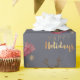C'est une aquarelle et une illustration de crayon de couleur d'un chien de pitbull avec l'écharpe et les andouillers rouges. Elle indique "bonnes fêtes" dans la police brillante d'or de faux sous le chien.