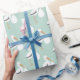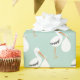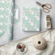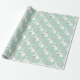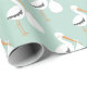 papier d'emballage baby shower avec un motif de cigognes portant des bouts de joie contre un arrière - plan vert menthe muet.