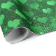 Papier d'emballage à motif de cœurs et de paillettes en vert émeraude métallisé.