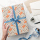 Papier Cadeau Motif de fleur d'art déco - crème sur l'orange de