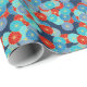 Papier Cadeau Motif de fleurs Art Déco - bleu, turquoise et roug