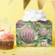 Il s'agit d'un motif coloré d'aquarelle de fleurs de protéa rose exotique avec des tiges vertes et des feuilles sur un arrière - plan beige clair.