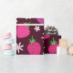 Papier Cadeau Motif de fraises et de fleurs blanches