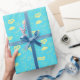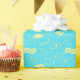 Papier d'emballage amusant et original avec illustration dessinée à la main de la graduation et des motifs liés à l'école en bleu et de chaux.