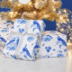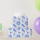 Emballage cadeau motif bleu paon royal, bleu et blanc.