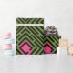Un dessin géométrique basé sur un motif des labyrinthes noirs diagonalement alignés. Une tache rose est centrée dans chaque labyrinthe. Par défaut l'arrière - plan est vert, mais vous pouvez remplacer la couleur pour créer de nouveaux effets. Presque n'importe quelle couleur semblera grande ! Les versions avec d'autres couleurs sur la tache rose centrée sont disponibles.