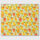 Aquarelles orange cool et jaune doré orne illustration avec un feuillage vert dans un motif transparent