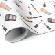 Ce papier d'emballage présente le motif illustré de Destei de divers types de produits de maquillage. Ces produits de maquillage comprennent palettes, poudre avec miroir, brosses de maquillage, rouge à lèvres, brillance à lèvres, fondation et mascara.