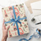 Papier Cadeau Motif De Noël Avec Cheminée, Arbres, & Père Noël