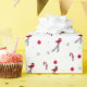 Papier Cadeau Motif de Noël avec un rouge-gorge, des sucettes, n