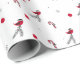 Un papier d'emballage élégant présentant un motif stylé de Noël et de saison hivernale avec des rouges-gorges en chapeau de Père Noël, des boules de décoration rouges, des sucettes, des branches d'épinette noires et des flocons de neige. Le fond est de couleur blanche. Conception minimaliste artistique. Idéal pour emballer vos cadeaux de Noël, de Nouvel An, d'anniversaire et autres. Ce design est personnalisable. Vous pouvez modifier l'image. Vous pouvez transférer le design sur un autre produit. Si vous souhaitez déplacer l'image, l'ajuster à la forme d'un produit choisi, ajouter du texte, veuillez utiliser le bouton "Modifier le design" ou "Personnaliser" (selon le cas) de couleur bleue. Cela vous transférera vers "l'Outil de conception" où vous pourrez effectuer toutes les personnalisations. Soyez simplement créatif, personnal