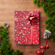 Papier d'emballage motif de Noël confetti rouge et or. Le design comporte un joli motif or sur un arrière - plan à texture rouge.