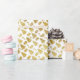 Papier Cadeau Motif de Noël d'arbres et de friandises. Doré sur