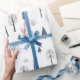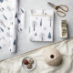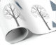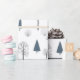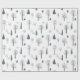 Papier Cadeau Motif de Noël de bleu, arbres noirs sur fond blanc