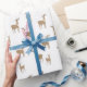 Papier Cadeau Motif de Noël de cerfs jaunes sur fond blanc