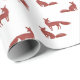 Papier Cadeau Motif de Noël de renards roux sur fond blanc