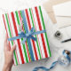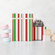 Ce papier d'emballage est décoré d'un motif rayé sur le thème de Noël avec des couleurs comme le vert, le blanc et le rouge. Il peut être amusant d'utiliser du papier d'emballage comme celui-ci pour envelopper des cadeaux ou des cadeaux donnés pour célébrer un anniversaire, un mariage, un anniversaire ou un autre événement.