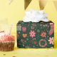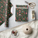 Un joli design motif de noël pour le papier d'emballage avec des cadeaux emballés, des bas de noël et des fleurs florales d'hiver sur un arrière - plan vert foncé. Un joli design pour envelopper tous vos cadeaux de Noël pour la saison des fêtes.