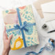 Papier Cadeau Motif de Pâques avec oeufs, lapin, poussin, fleurs