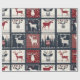 Ce papier d'emballage présente un motif en patchwork tricoté au charme boisé, avec des cerfs stylisés, des pins et des motifs rustiques disposés en grille de blocs. Rendu dans une palette festive de crème, de bleu foncé et de rouge, il met en valeur l'aspect cosy des points de suture tissés et de l'artisanat traditionnel d'hiver. Idéal pour les amateurs de style rustique de ferme, de décors de vacances nordiques et de décoration de Noël d'inspiration vintage. Un design chaleureux et intemporel qui fait entrer l'esprit des forêts d'hiver dans la saison festive.