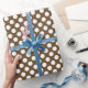 Papier d'emballage à points de polka Brown et blanc. Pois blancs sur un arrière - plan brun foncé.