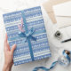 Papier Cadeau Motif de pull de Noël bleu et blanc