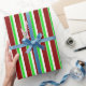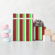 Ce papier d'emballage est décoré d'un motif rayé vert, blanc et rouge inspiré de Noël. Envelopper du papier comme celui-ci peut être amusant à utiliser lors de la préparation de cadeaux ou de cadeaux donnés pour célébrer un anniversaire, un mariage, un anniversaire ou tout autre événement.