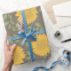Simple et mignon, ce papier d'emballage Motif de fleurs de soleil rustiques est la façon parfaite d'envelopper un baby shower, un anniversaire ou un cadeau d'université. Cette enveloppe-cadeau peut également fonctionner pour des projets artisanaux comme le revêtement de l'intérieur des tiroirs de la commode et bien plus encore. Présente des tournesols jaunes et des feuilles verts sur un arrière - plan marron.