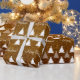 Papier d'emballage mignon avec les arbres de Noël motif sur un arrière - plan de parties scintillant graphique marron. customisez-le facilement !