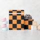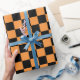 Grand papier d'emballage orange et noir à damiers vif et ludique. Ce papier d'emballage est parfait pour ajouter une pop de couleur à n'importe quelle occasion, que ce soit un anniversaire, un anniversaire, Halloween, ou juste parce que.