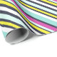 Donnez à vos cadeaux une touche de finition brillante et audacieuse, avec ce papier d'emballage coloré. L'enveloppement cadeau est modelé avec des rayures diagonales dans un mélange de couleurs vives, dont le rose magenta, le bleu clair, le jaune citron, le blanc et la marine.