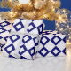 Un motif graphique sophistiqué de formes diamant blanc et marine. Les diamants bleus foncés contiennent chacun un petit diamant blanc qui fait du blanc la couleur dominante du design original. numériquement créé une image. Copyright © 2013 Claire E. Skinner. Tous droits réservés.